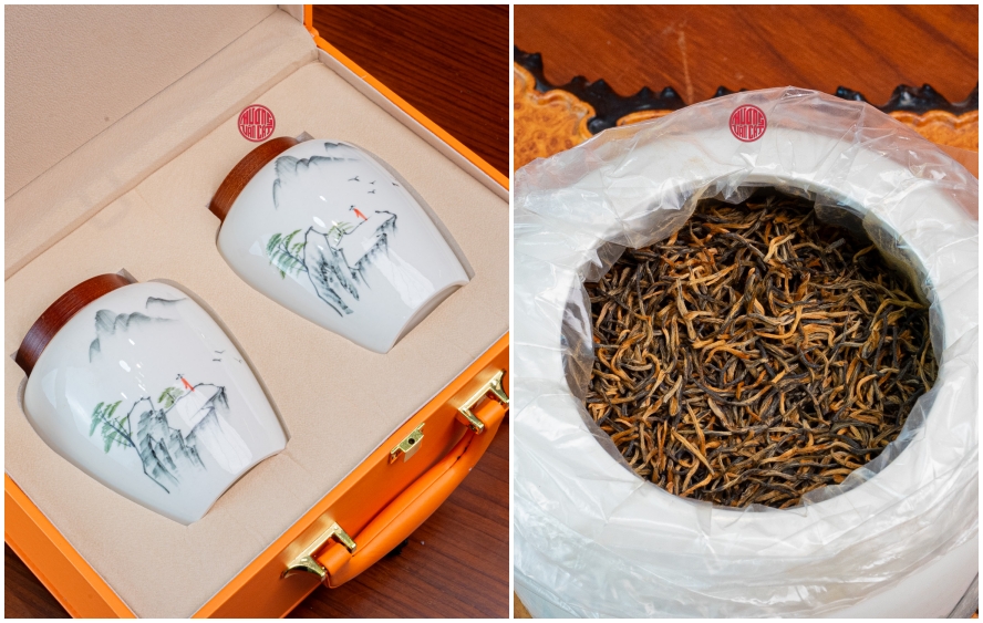 Một hộp quà biếu trà ngày nay không chỉ chú trọng vào chất lượng trà bên trong mà còn được chăm chút tỉ mỉ về hình thức. Những mẫu hộp trà quà tặng bằng gỗ, gốm hay giấy cứng cao cấp với hoa văn tinh xảo sẽ làm tôn vinh không gian phòng khách ngày Tết. Sự kết hợp giữa trà và trà cụ cao cấp tạo nên một tổng thể hài hòa, biến món quà trở thành một tác phẩm nghệ thuật sang trọng trên bàn trà xuân.